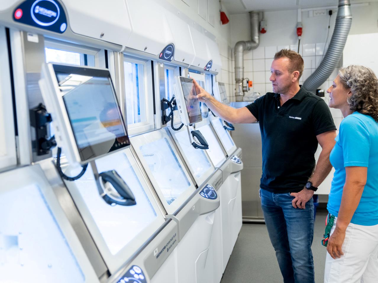 - En typisk opgave for mig kan bestå i, at jeg bliver kaldt ud til akut service på et hospital, hvor endoskop-vaskemaskinen ikke fungerer. En afdeling har ofte kun én endoskop-vaskemaskine, så når de har brugt deres skoper og ikke kan få dem vasket, har de et kæmpe problem i forhold til patienterne. Når jeg kommer, sørger jeg for at skifte for eksempel en pumpe eller ordne en utæthed, og 99 procent af gangene virker det igen, når jeg kører derfra, siger Martin Nørgaard.