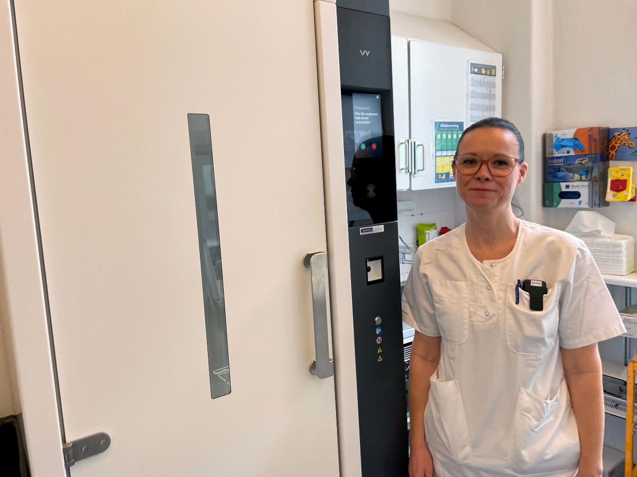 ”Vi er meget glade for skabet”, siger sygeplejerske Dorthe Besser Jakobsen. ”Med det kendskab, vi har til skabet nu, så fungerer det rigtig godt. Vi kunne måske godt drømme om, at der kunne være flere end ét skop i skabet, men det er en lille ting. Skabet klarer desinficeringen på 60 sekunder, så der bliver hurtigt plads til et nyt endoskop. Jeg er blevet så glad for den nye teknologi, at jeg også ønsker mig en bordmodel til desinficering af mindre ting som instrumenter og mobiltelefoner”.