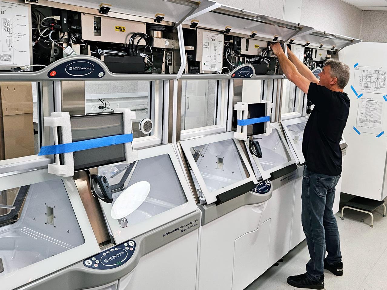 Medicotekniker Morten Christensen, Santax Medico under installationen på endoskopiafsnittet i Slagelse. Efter endt installation og godkendelse af vandprøver underviste Morten Christensen og Tim Madsen fire hold brugere i anvendelse af udstyret.