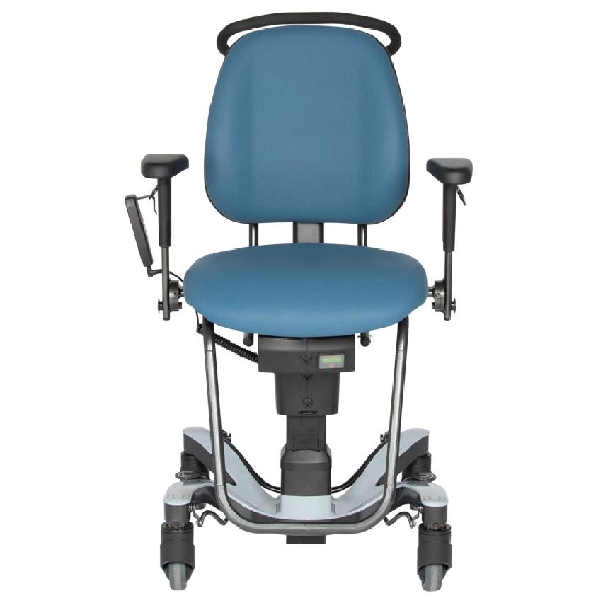 Når radiografen har taget de bookede billeder, kan stolen hjælpe gangbesværede patienter op at stå ved at radiografen kører stolen op.