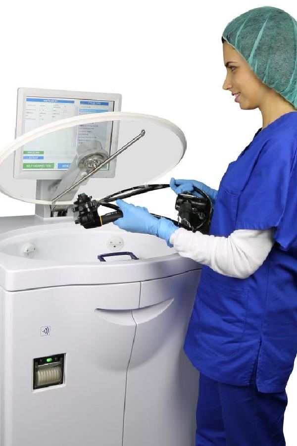 Vasker alle typer af fleksible endoskoper med pereddikesyre på omkring 25 minutter.