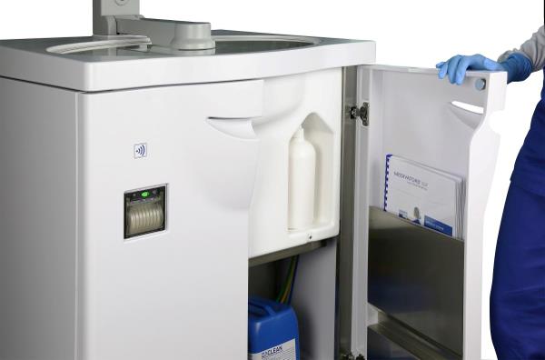 Alle vaskeprocesser kan følges på den store indbyggede touchskærm, som også håndterer det indbyggede dokumentationsprogram. Automatisk RFID-registrering sikrer en hurtig og hygiejnisk lagring af data. Disse kan efterfølgende printes ud efter behov eller overføres til en computer via et USB-stik. Kemi, sæbe og alkohol kan let udskiftes fra fronten.