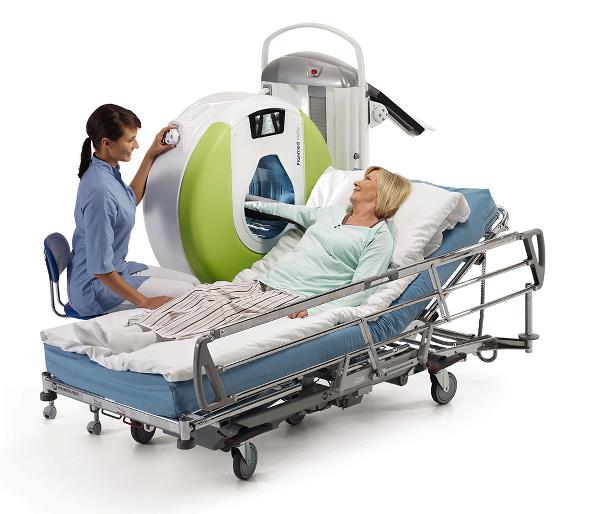 - Motoriseret gantry, 55-112 cm fra gulv, +15°/-90° kip, horisontal gantry-position for optagelse med vægtbelastning.