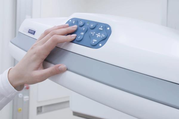 De automatiske bevægelser mindsker behovet for, at du håndterer systemet manuelt. Det mindsker risikoen for, at du får arbejdsskader som følge af tunge løft og ensidige, gentagne bevægelser. Selv små manuelle justeringer kan du foretage uden fysisk belastning. Når en undersøgelse kræver, at du er ved patientens side, kan du styre alle funktioner via den mobile og højdejustérbare betjeningsenhed. Præcis som hvis du stod i betjeningsrummet har du fuld adgang til både indblænding og generatorparametre.