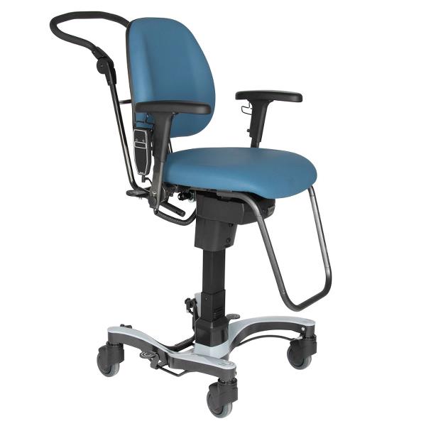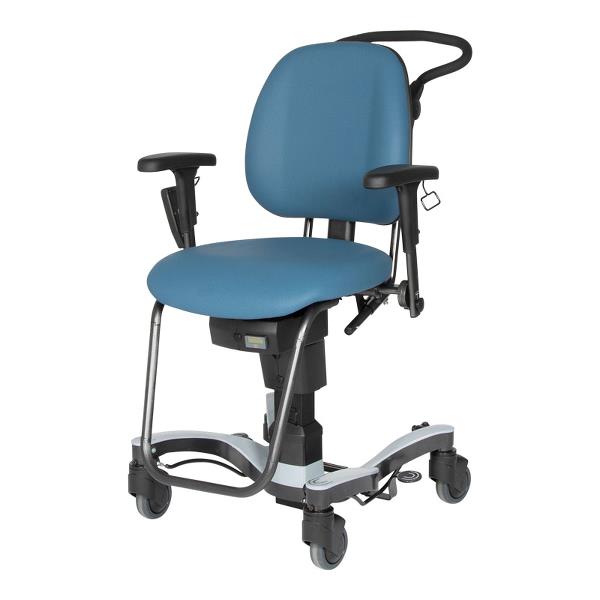 - Patienten sidder komfortabelt og stabilt, da stolen har ergonomisk sæde og ryg, der er kraftigt polstrede.