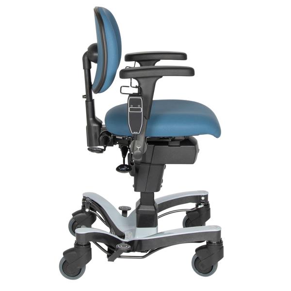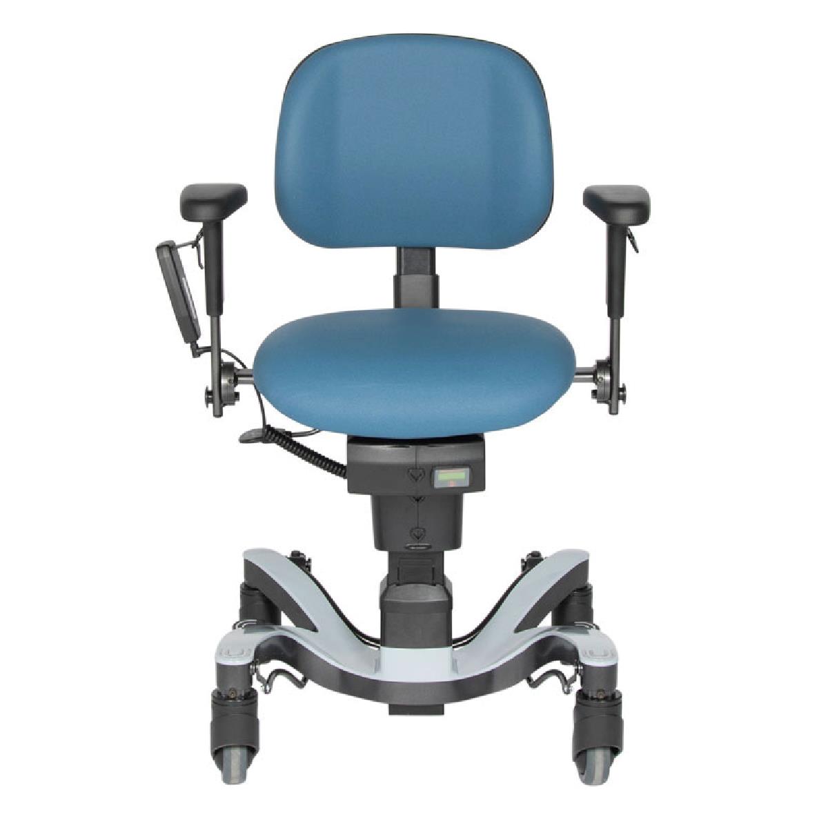 - Patienten kan nemt selv sætte og rejse sig fra stolen ved hjælp af armlæn og den stabile base, som stolen giver