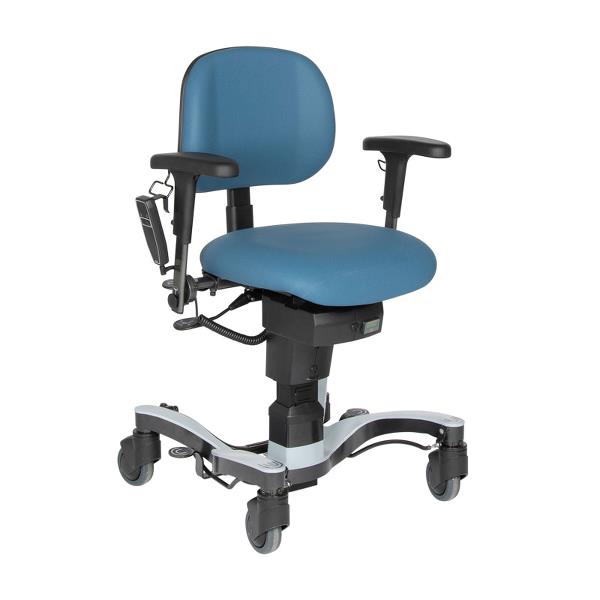 - Stolen højdeindstilles nemt via el-betjening, så patienten sidder korrekt i forhold til apparaturet.
