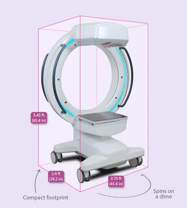 På under to minutter, kan du få detaljerede 3D-billeder, der viser patientens anatomi fra mange vinkler. Scanneren kan afsløre patologier, der let kan være skjult på konventionelle 2D-røntgenbilleder.