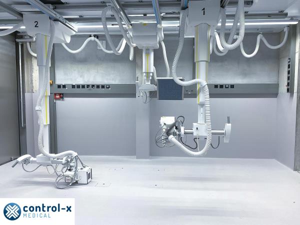 Der findes mange muligheder for tilpasning af systemet til din kliniks behov. Som udgangspunkt er de langsgående skinner 440 cm og de tværgående skinner er 300 cm. Den vertikale vandring på røntgenrør og detektor er som standard 180 cm. Som option findes systemet også med et ekstra røntgenrør for flere positioneringsmuligheder.
