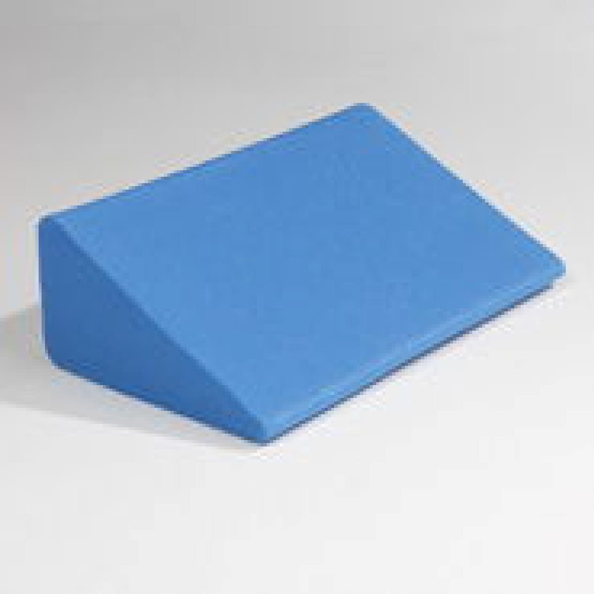 40 x 24 x 12 cm, 30 grader. Optimeret for røntgen. Hygiejnisk og slidstærk, så væske ikke kan trænge ind i materialet. Kan rengøres med sprit og sæbeopløsning. Betrukket med blåt kunstlæder (PU).