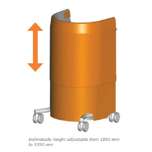Mobil blyvæg, halvrund, H=106-136 cm, Pb 0,5 mm