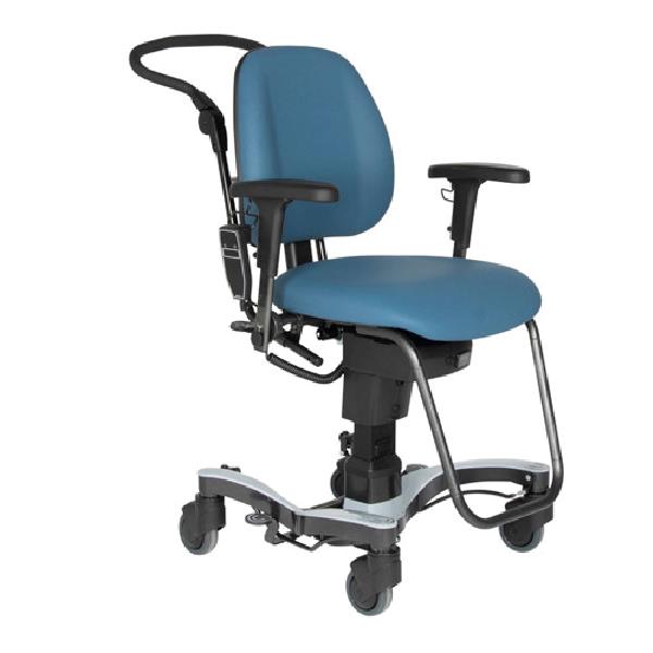 Stol til patienter, som har brug for at sidde ned ved mammografiundersøgelser. Fod til kvinder, der har tendens til at besvime, kørestolsbrugere eller patienter med sygdomme, der påvirker bevægeapparatet. Hurtig placering af patienten i en sikker og låst base. Det er nemt at flytte og placere patienten ift. undersøgelsesapparatet, da stolen har letløbende hjul, fodbremse og skubbebøjle. Mere præcis undersøgelse af utrygge patienter da de slapper mere af, når de sidder ned ift. at stå op. Optimal positionering af patienten med indstillelig elektrisk højdeindstilling, som gør det nemt at indstille højden, så det passer til apparatur og personalet. God arbejdsstilling for personalet, uanset patientens højde, da patienten kan sidde i en passende arbejdshøjde for personalet, uden unødig belastning af ryg, skuldre og nakke. Patienten kan fikseres i en fremadrettet stilling vha. indstilling af ryglæn. Patienten kan forflyttes mellem f.eks. kørestol og patientstol pga. nedklappelige armlæn.