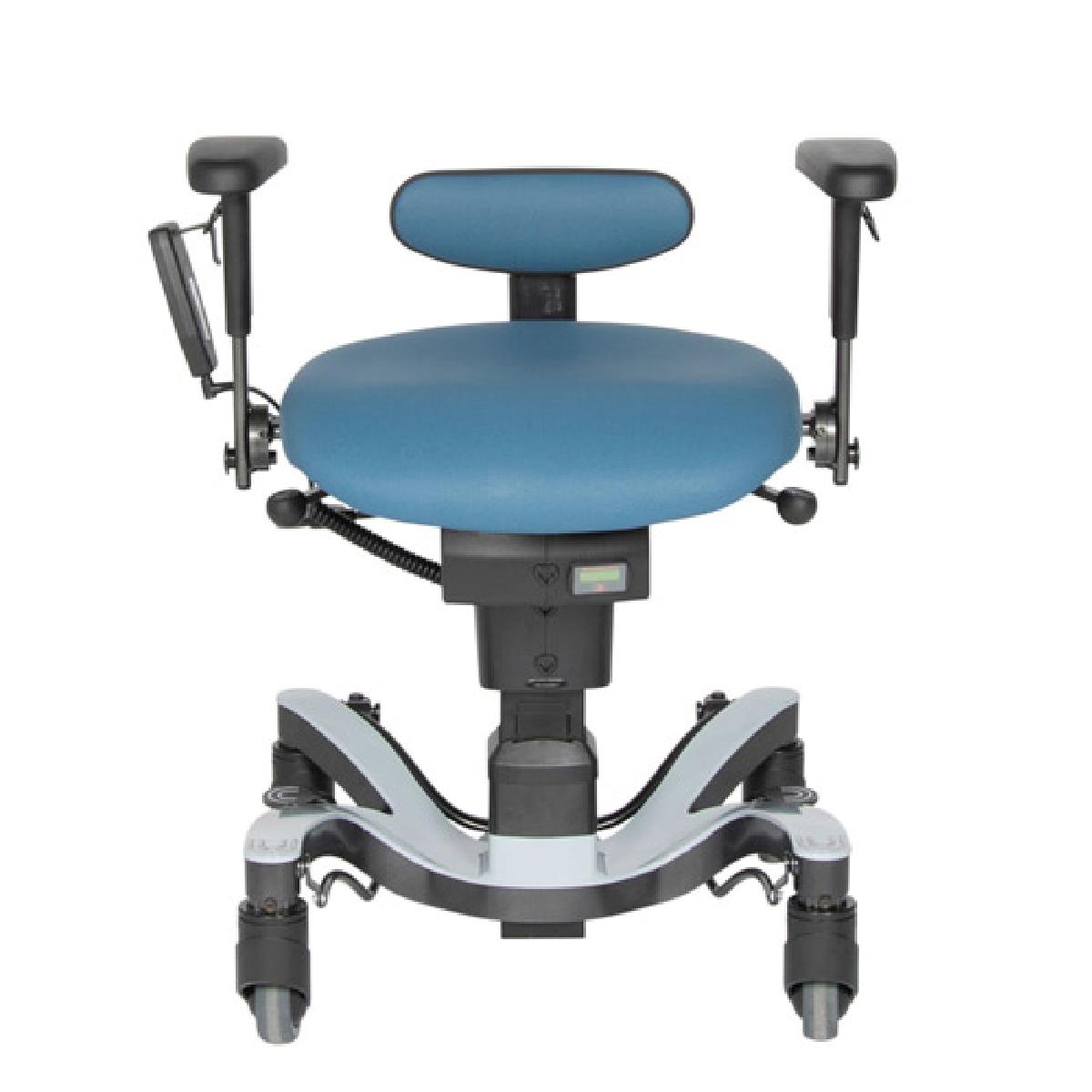 Patientstol som benyttes ved røntgen af thorax, hvor en stillesiddende og stabil patient er en forudsætning for korrekte billeder. Låsbar sæderotation (45°/90° højre og venstre) og nedklappelige armlæn giver let adgang til billeder fra flere vinkler. Patienten placeres ved apparatet, armlæn klappes ned og patienten kan drejes i stolen, når der tages billeder. Giver optimale thoraxbilleder af siddende patienter. Armlæn og ryglæn kan indstilles lavt så de ikke er i vejen for billeder af hele thorax. Optimal positionering af patienten med finindstillelig elektrisk højdeindstilling, er en forudsætning for korrekte billeder. Optimal ergonomisk arbejdsstilling for personalet uden unødige foroverbøjede stillinger, da stolen låses med fodpedal og højdeindstilling foregår via håndboks. Hurtig placering af patient i en sikker, låst base samt effektiv og nem tilpasning til det omkringværende apparatur. Nemt at flytte stolen til en anden positionering af patienten pga. letløbende hjul, som fungerer godt på alle gulvtyper.
