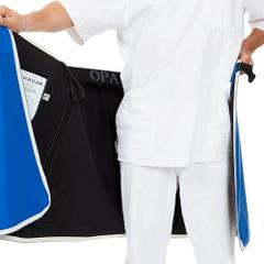 Opaque Fusion materialet indeholder en kombination af metallerne Bismuth og Antimon, der yder samme høje beskyttelse mod røntgenstråler som de tidligere blyforklæder, men med 15 - 20% vægtreduktion på forklæderne. Dette vil optimere ergonomien og arbejdsgangene for personalet. Forskellige skørt- og veststørrelser kan kombineres for at give den bedste personlige komfort og bevægelsesfrihed. Frost er designet til opgaver der kræver bedst mulig hygiejne. Derfor er der ingen kantbånd eller lommer på hverken vest eller skørt. Vesten har magnetlukning som tillader en grundig rengøring. Vesten kan lukkes på tre forskellige måder: bagpå vesten og foran både ovenpå på vesten og under vesten. Standardlængde er 58 cm. Kan også bestilles i intervaller af 5 cm mellem 53 og 73 cm. Hvis det ønskes, kan der broderes eksempelvis initialer eller afdeling på vesten. Kontakt Santax for yderligere information på 70 13 30 20.